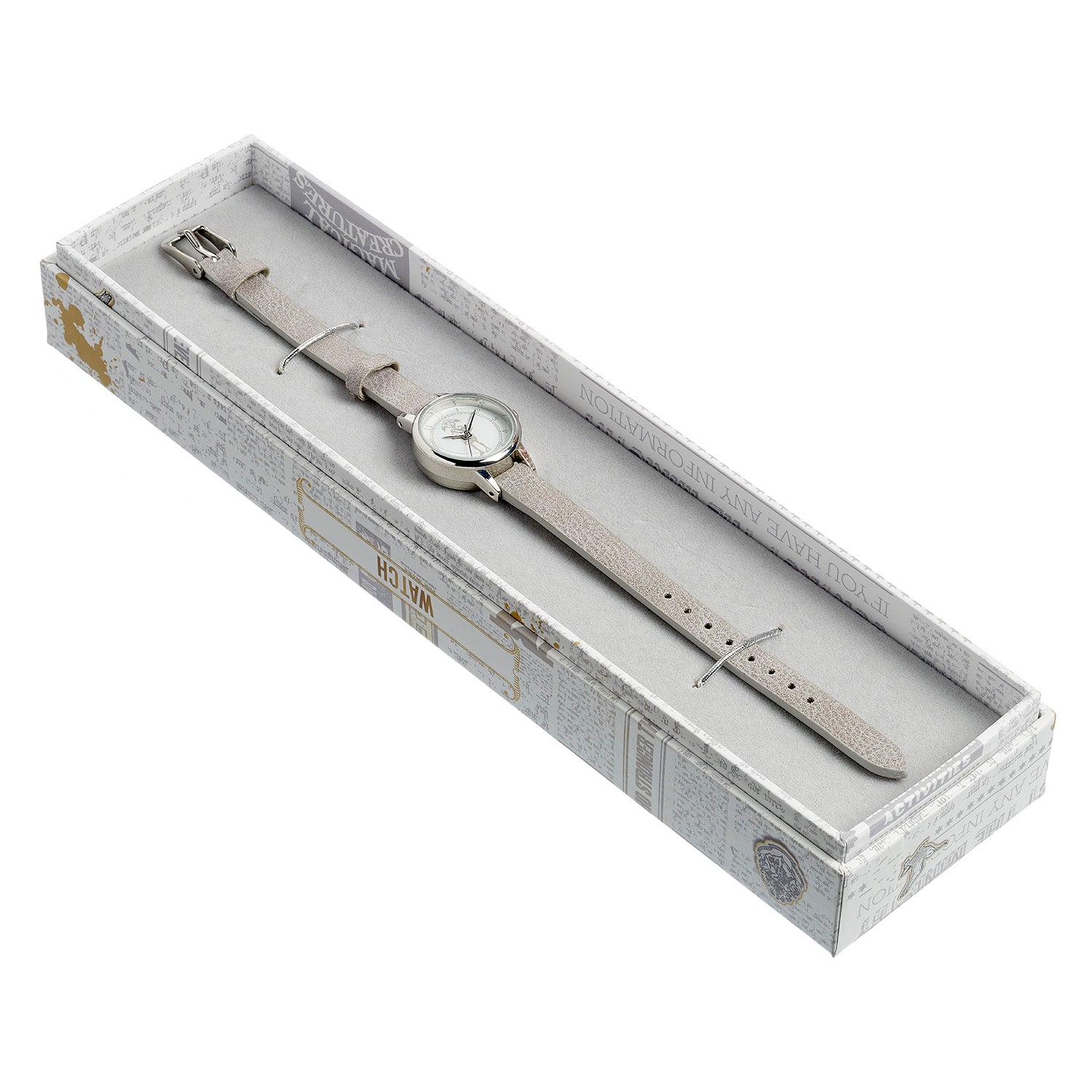 The strap is faux leather with a silver plated buckle with the Harry Potter logo