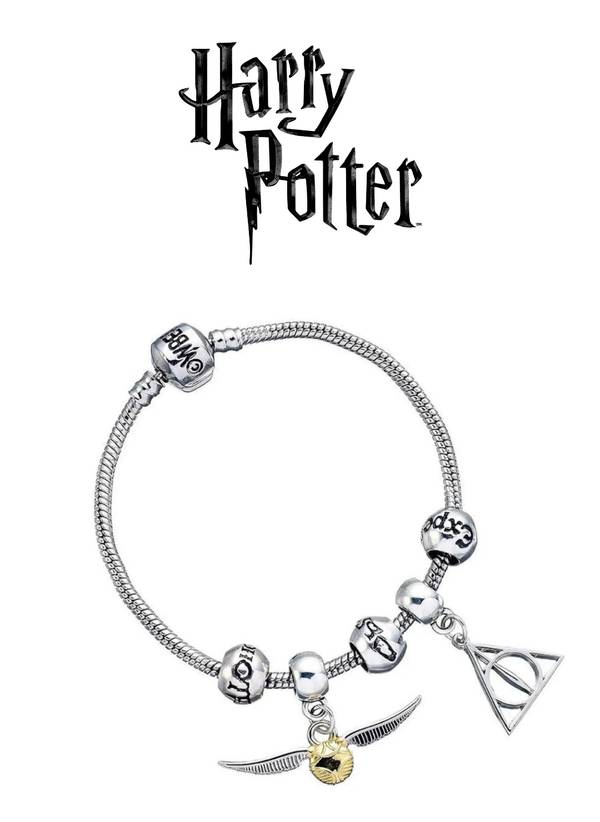 Ensemble de bracelets à breloques Harry Potter - Reliques de la mort, Vif d'or, 3 perles de sort - Argent - Moyen - 19 cm