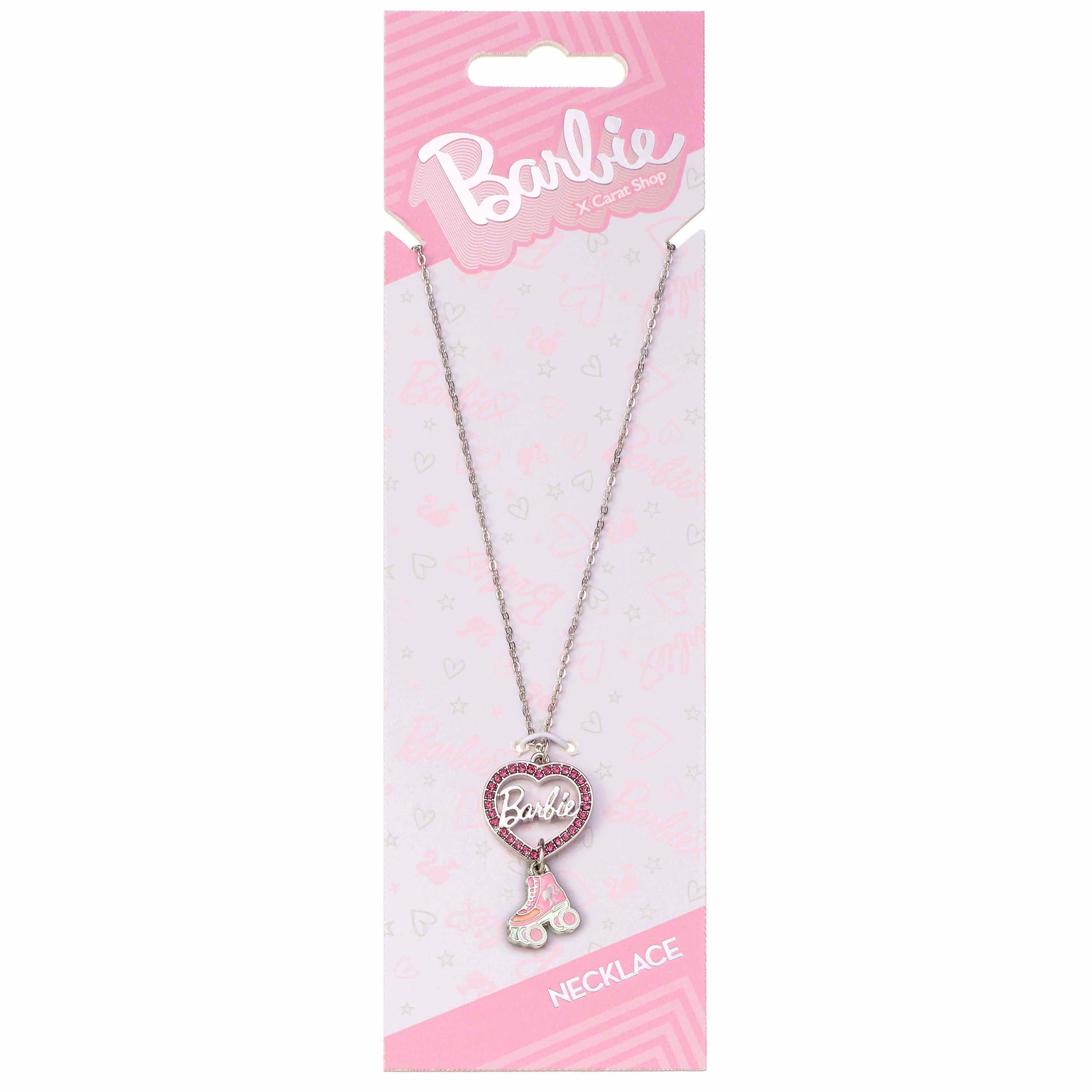 Sparkle and shine while roller skating with Barbie’s Crystal Heart and Roller Skate Necklace! Featuring a cut-out name logo surrounded by pink crystals and finished off with a playful roller skate charm, this timeless piece perfectly captures the heartfelt nostalgia of childhood play. With enamel and crystal details, on a silver tone trace chain with 5 cm extender, this necklace from the official jewellery collection for ages 14 and up will be a keepsake for many years!