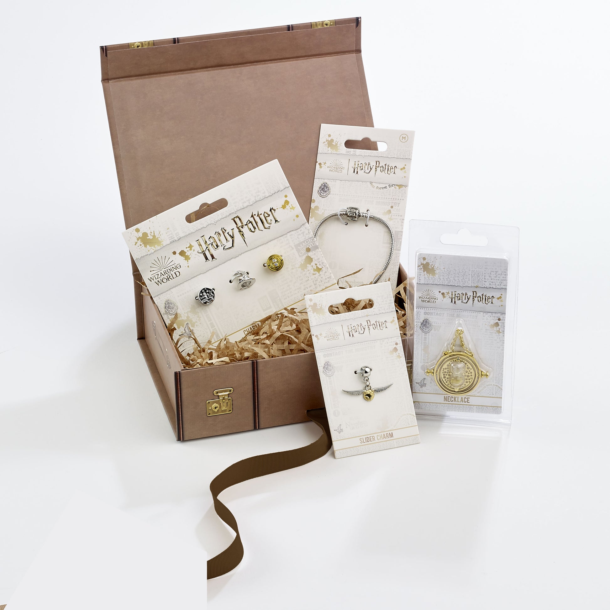 | Lot de bijoux Harry Potter Trunk Box Ce coffret cadeau comprend un bracelet, une breloque Vif d'or et un ensemble de perles intercalaires, avec un collier tourne-temps tournant présenté dans une boîte-cadeau malle souvenir Harry Potter. Un cadeau parfait pour tout fan de Harry Potter ! |