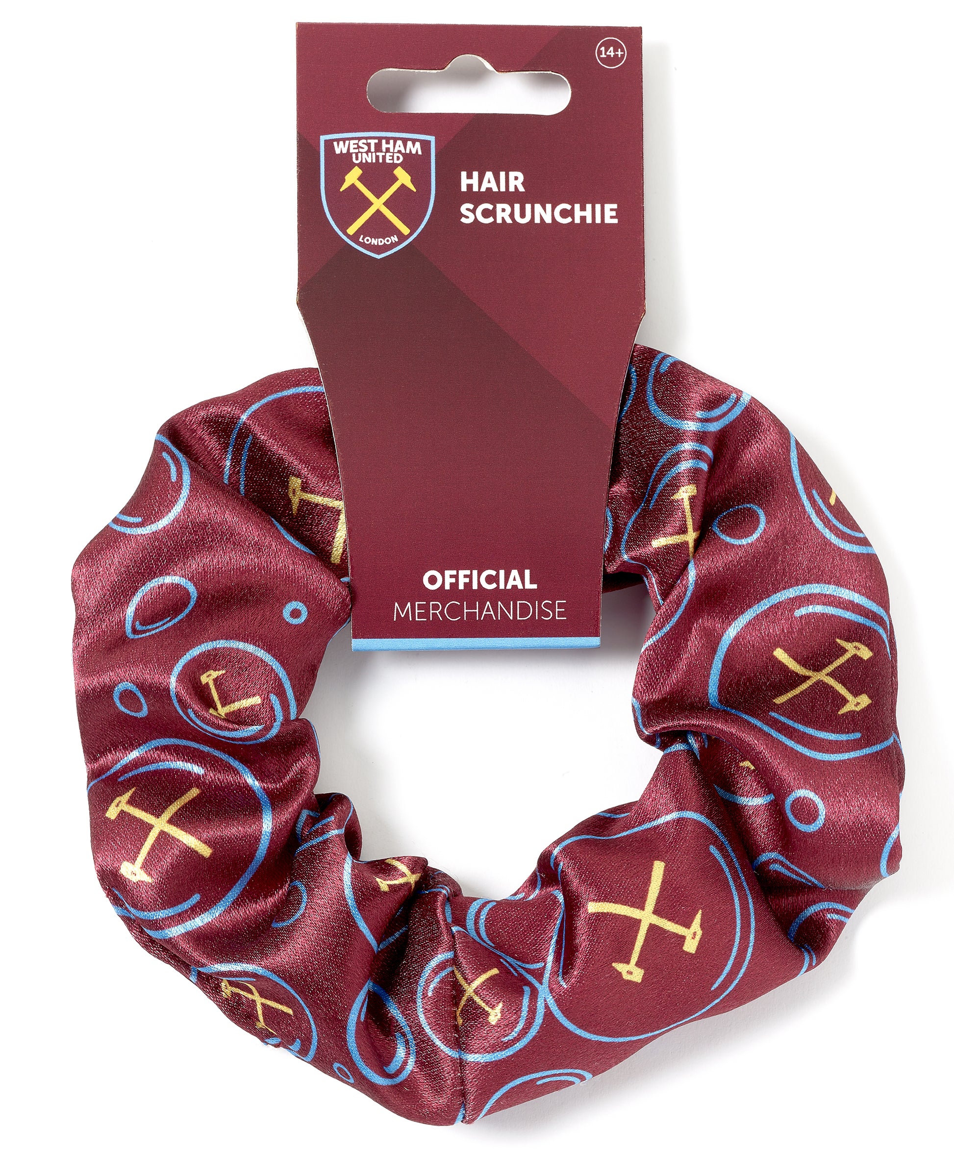 Celebrate West Ham United with this playful hair scrunchie, adorned with the club’s famous bubbles from the supporters’ song. Perfect for keeping your hair tidy while showing your team pride, this accessory is ideal for fans aged 14 and up. Grab yours and add a fun twist to your game day look! Made from soft polyester fabric.