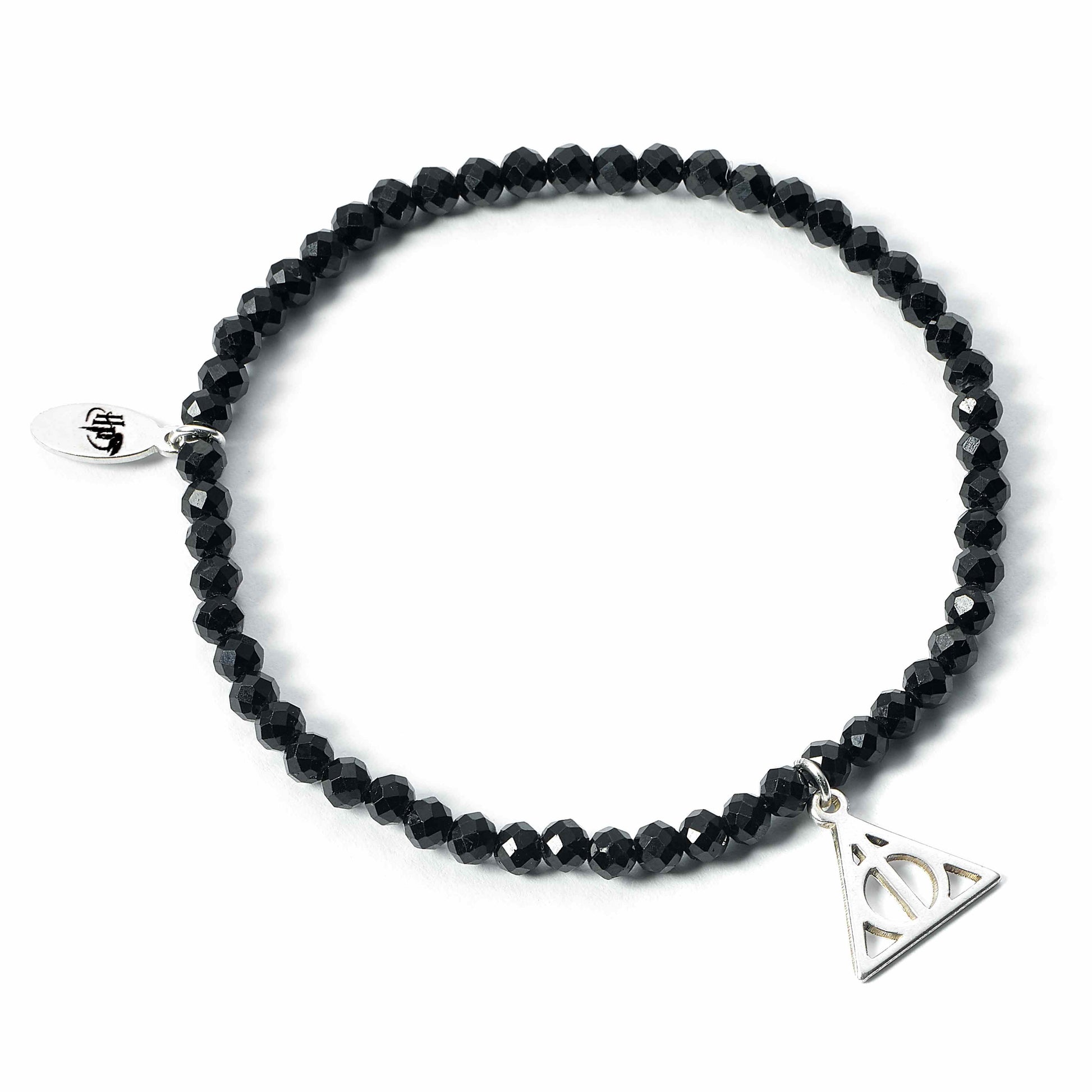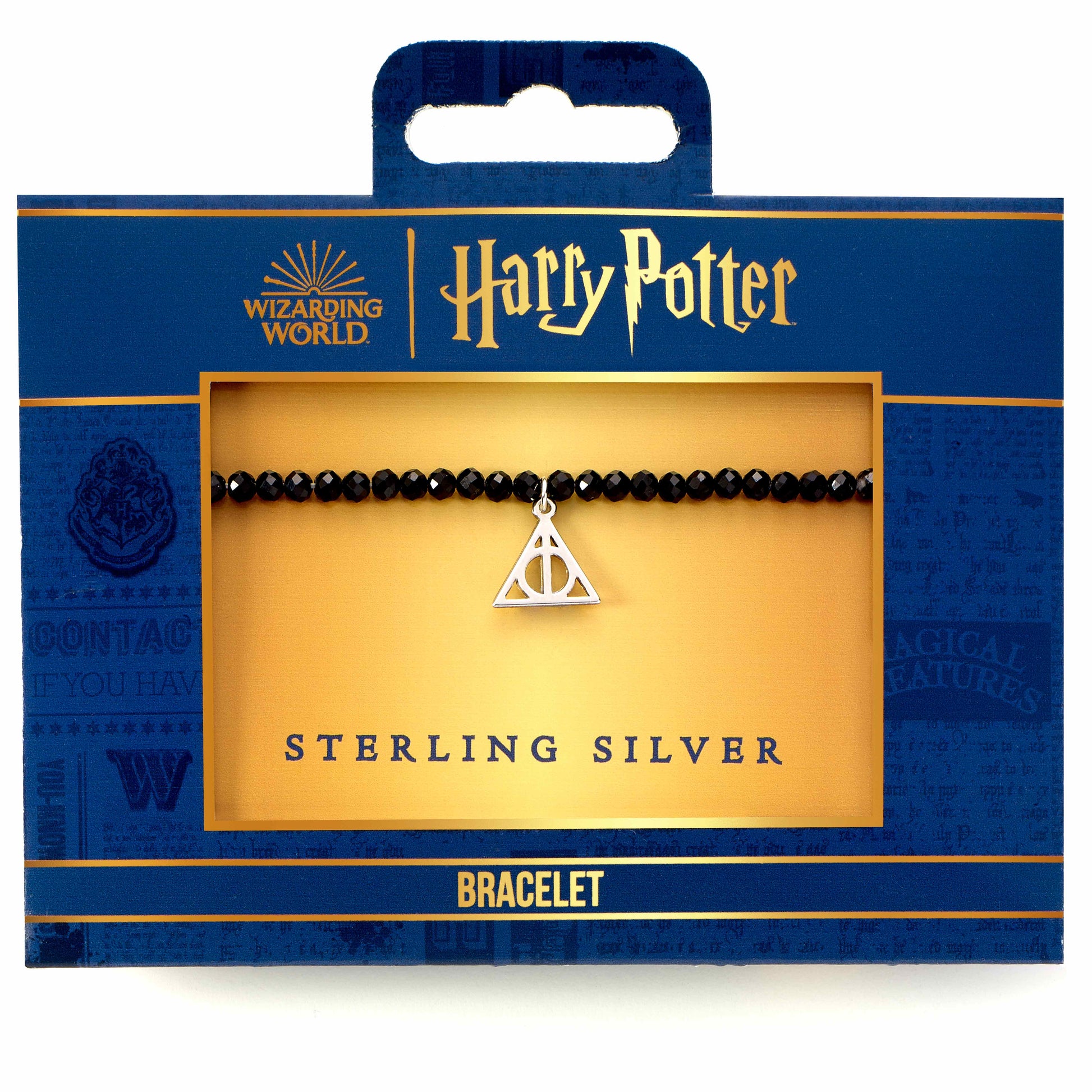 Step into the magic of Harry Potter with this stunning black crystal bracelet featuring a 925 sterling silver Deathly Hallows charm! Crafted in the UK, this expandable 18cm bracelet makes a charming gift for any Potterhead or a spellbinding addition to their collection. Legend speaks of the three enchanted relics—the Elder Wand, Resurrection Stone, and Cloak of Invisibility—that make up the Deathly Hallows. Suitable for ages 14 and up, it arrives in a stylish gift envelope ready to enchant.