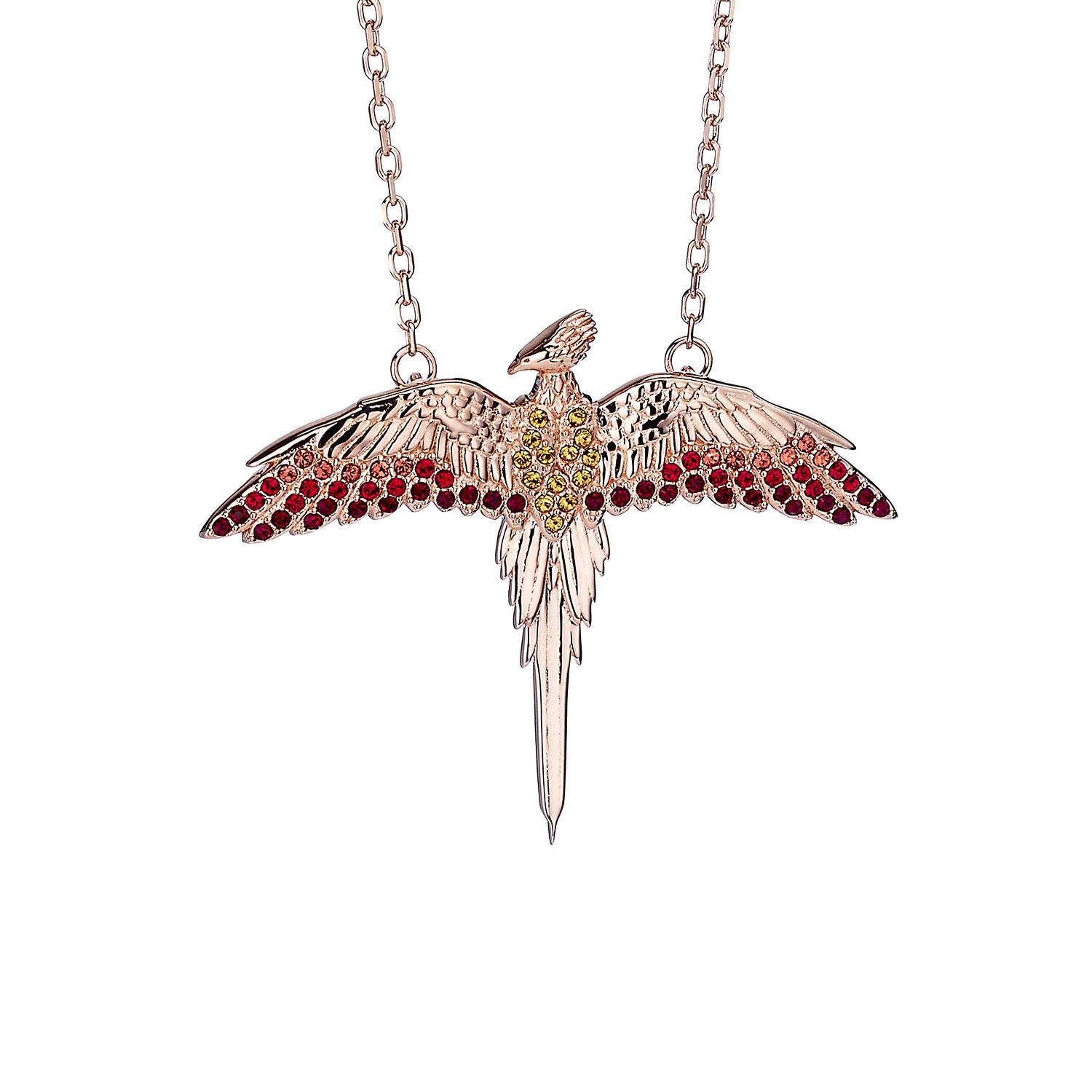 Harry Potter Fawkes Necklace Embellished with Crystals - Rose Gold Plated Sterling Silver