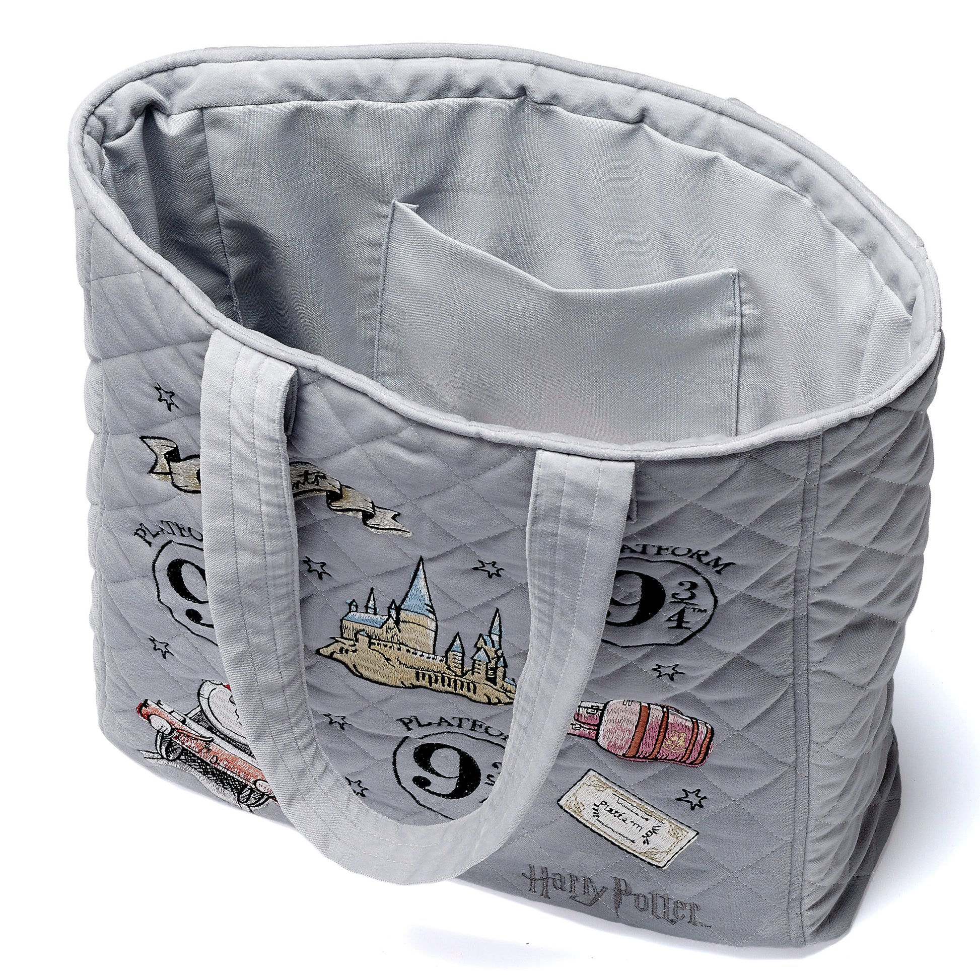 Carry your wizarding world wherever you go with this enchanting velvet tote, beautifully adorned with embroidered Platform 9¾ details. Its roomy size makes it the perfect companion for shopping trips, school days, weekend getaways, and magical adventures alike. Crafted from sumptuous quilted cotton velvet, this officially licensed bag blends luxurious style with everyday practicality. Measuring 39cm high, 36cm wide, and 12cm deep, with handles measuring 29cm from the top of the handle to the edge of the bag, it's designed for comfort, style, and a touch of wizarding wonder.
